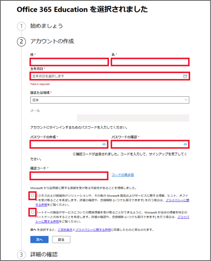 アカウント登録完了後、別途管理者側で必要な処理を行わないとOffice製品のダウンロードやインストール、ならびにライセンス認証が行えないため、登録が完了した旨を教育研究情報課(厚木:本館2階センター管理室・中野:1号館1階 オフィス1)までご申告いただくか、以下までご連絡ください。