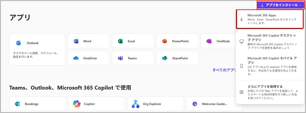 対象デバイスに別のOfficeがインストールされている場合、そのままでは本学提供のMicrosoft 365 Appsはインストールできません。