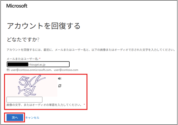 • 大学のメールアドレスを入力し、「次へ」をクリックします。