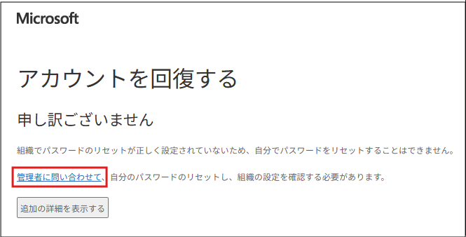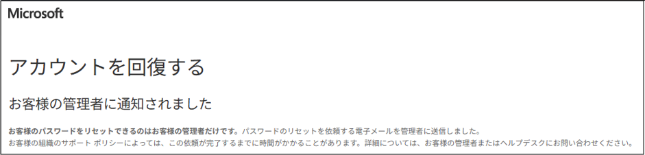 • 「管理者に問い合わせて、」をクリックし、パスワードリセットのリクエストを実行します。