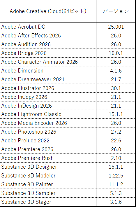 | デザインソフト総合 | Adobe Creative Cloud 2026 ※クリックで内容を表示 | - | 〇 | 〇 |