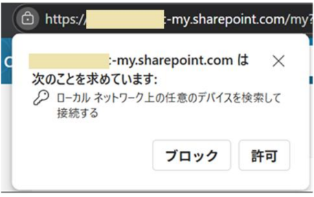 本ポップアップは利用上問題ございませんので、表示された際は「許可」 を選択してください。